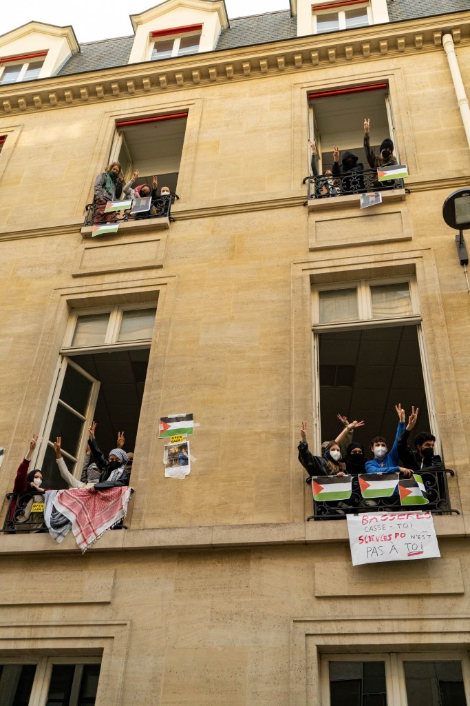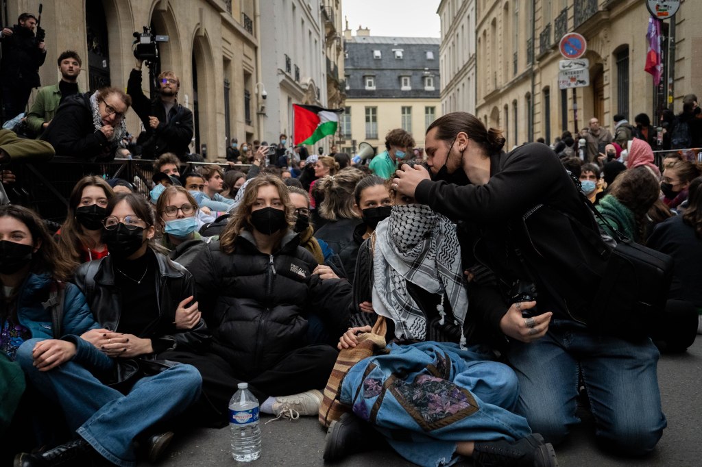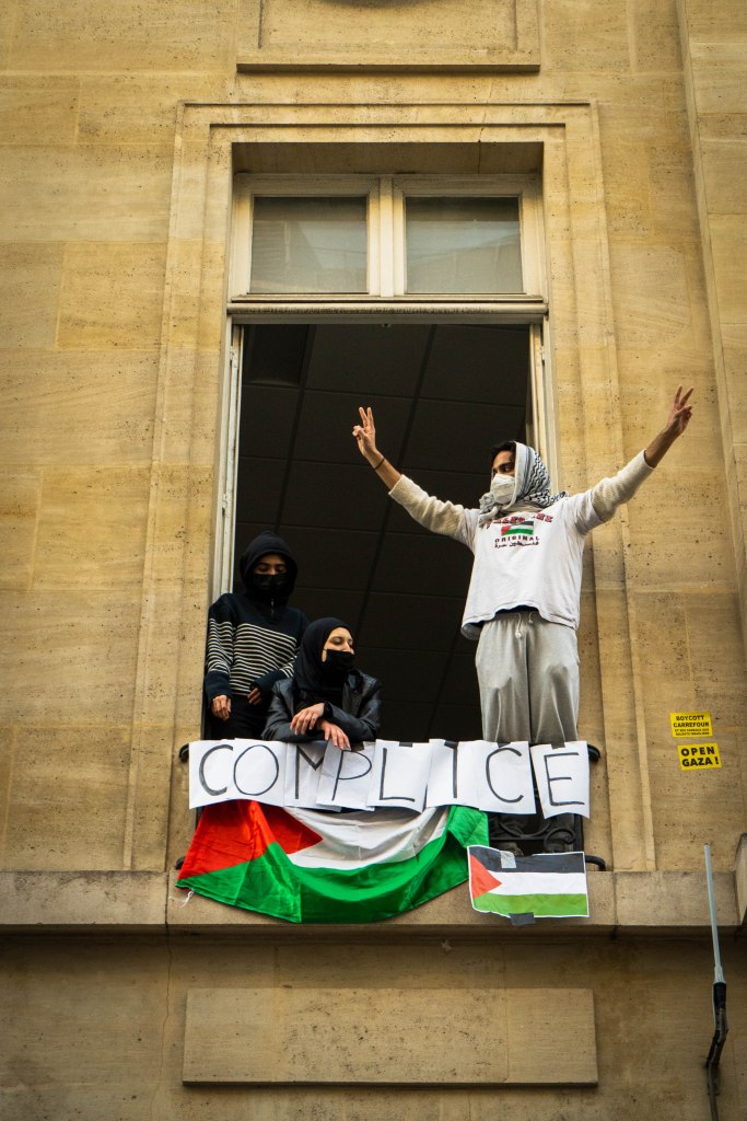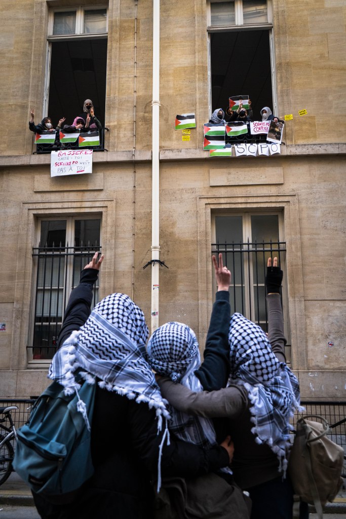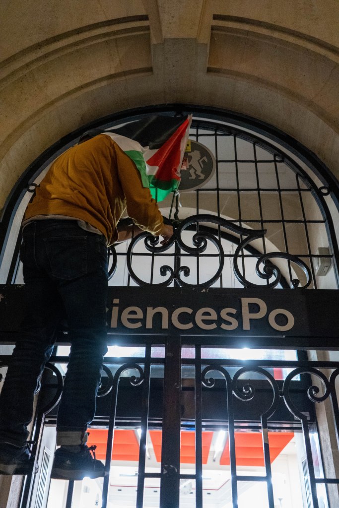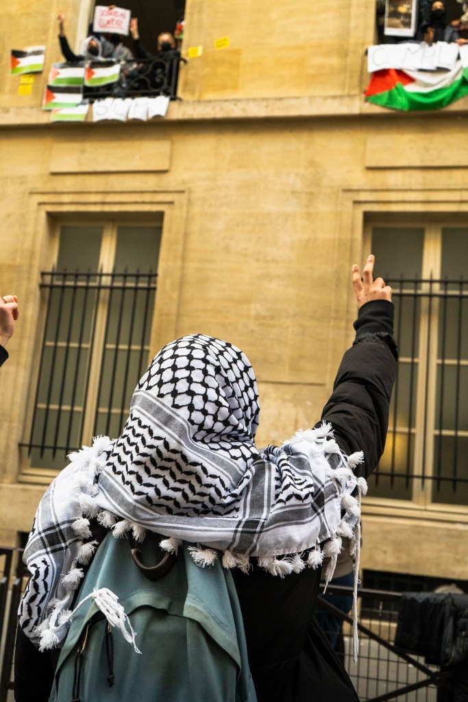 Le jeudi 25 avril 2024, les étudiants de Sciencespo Paris ont voté en faveur de l’occupation de l’établissement lors d’une assemblée générale. Cela fait suite à la répression policière de la veille lorsque les étudiants occupants le campus de St Thomas ont été délogés de force par les CRS dans les alentours de minuit. Les étudiants demandent à leur établissement de condamner clairement le génocide en cours à Gaza, rompre ses partenariats avec les universités israéliennes comme elle l’a fait pour les universités russes et se retirer de certains partenariats avec des entreprises complices du génocide. Les étudiants ont donc commencé l’occupation dès le jeudi soir (toujours en cours), ils ont étés soutenus par des manifestants toute la nuit, ces derniers les ont ravitaillés en nourriture. L’occupation s’est poursuivie le lendemain avec le blocus complet du campus. De nombreux manifestants se sont joints aux étudiants pour leur apporter leur soutien et malgré l’arrivée provocatrice des activistes du groupe sioniste « Nous Vivrons » pour s’opposer à ce rassemblement, ce dernier s’est passé dans le calme et les militants pro-israéliens qui ont fait des irruptions au sein de la foule n’ont pas été agressés. La situation s’est tendue vers 19h avec différentes sommations des forces de l’ordre annonçant une charge imminente suite à l’annonce du préfet de Paris demandant « l’évacuation de la voie publique ». L’intervention des députés LFI Jérôme Legavre et Thomas Portes qui se sont positionnés entre les CRS et les étudiants a empêché les forces de l’ordre de charger les étudiants qui étaient déjà nassés depuis plusieurs heures. Vers 21h, la levée du blocage a été annoncée par les étudiants suite au communiqué de la direction de SciencesPo se pliant à deux des trois demandes des étudiants mobilisés à savoir la tenue d’un « town hall » avec l’administration et la cessation des poursuites disciplinaires envers les étudiants propalestiniens.