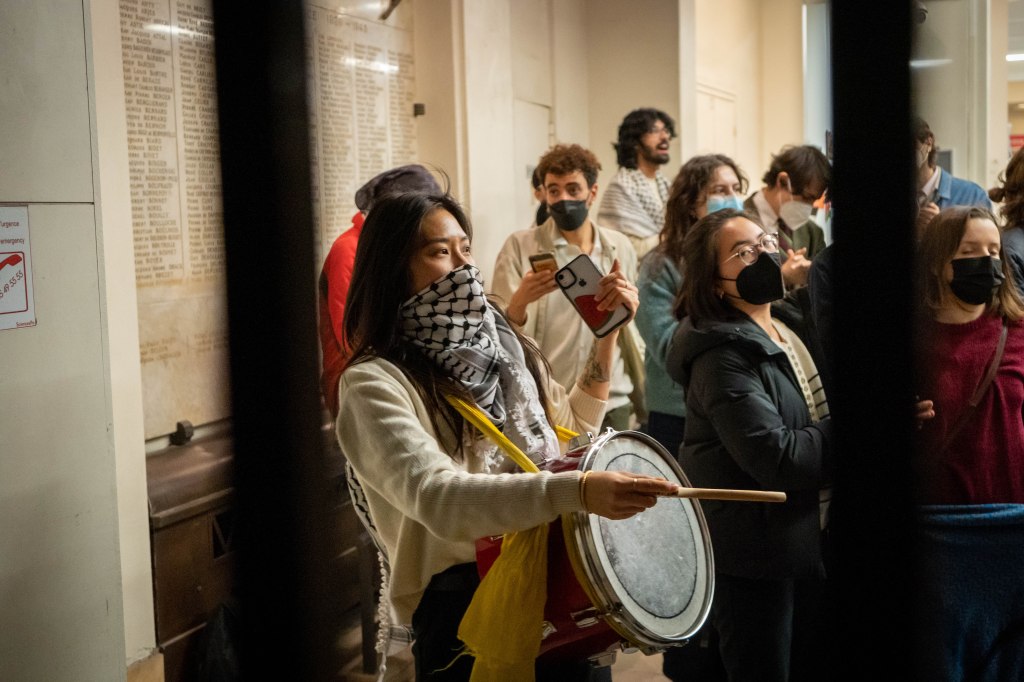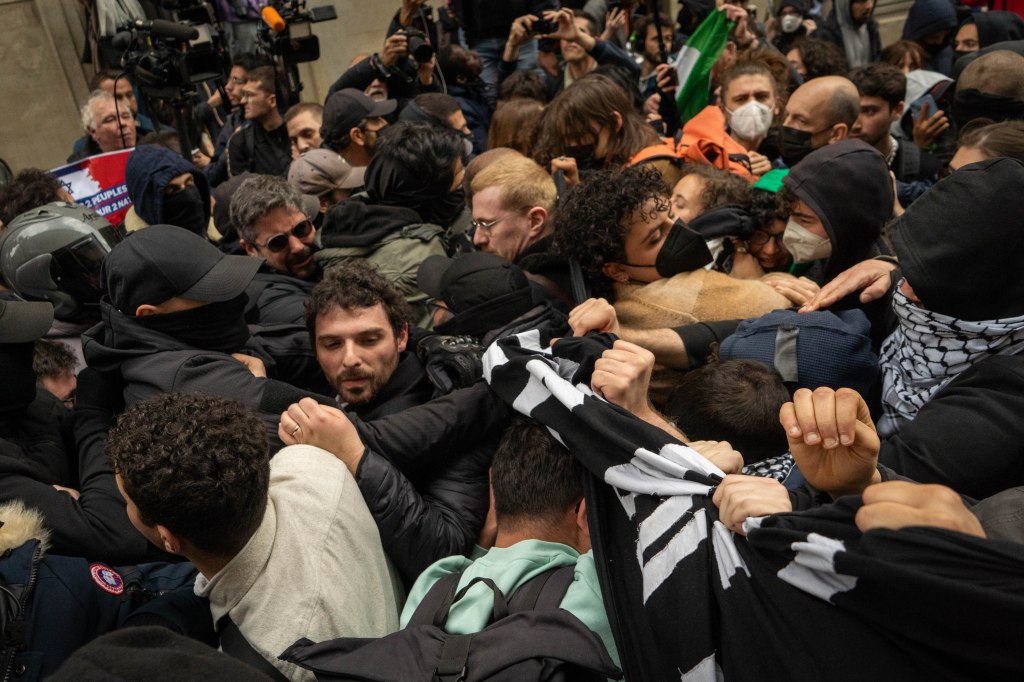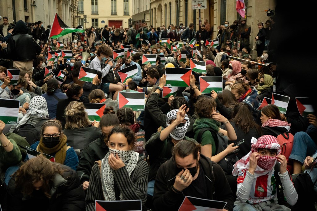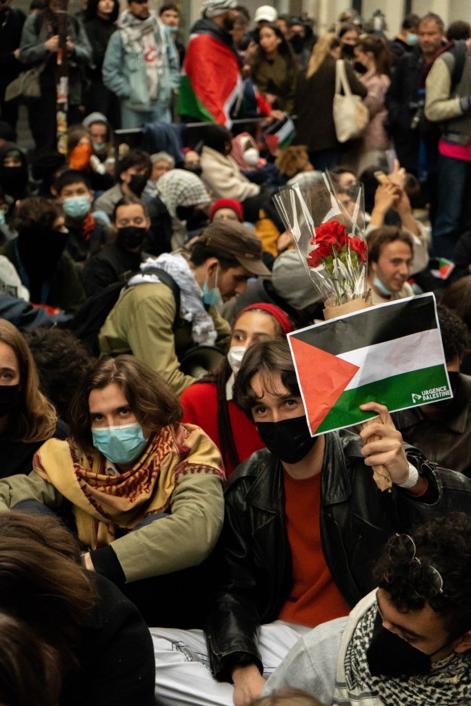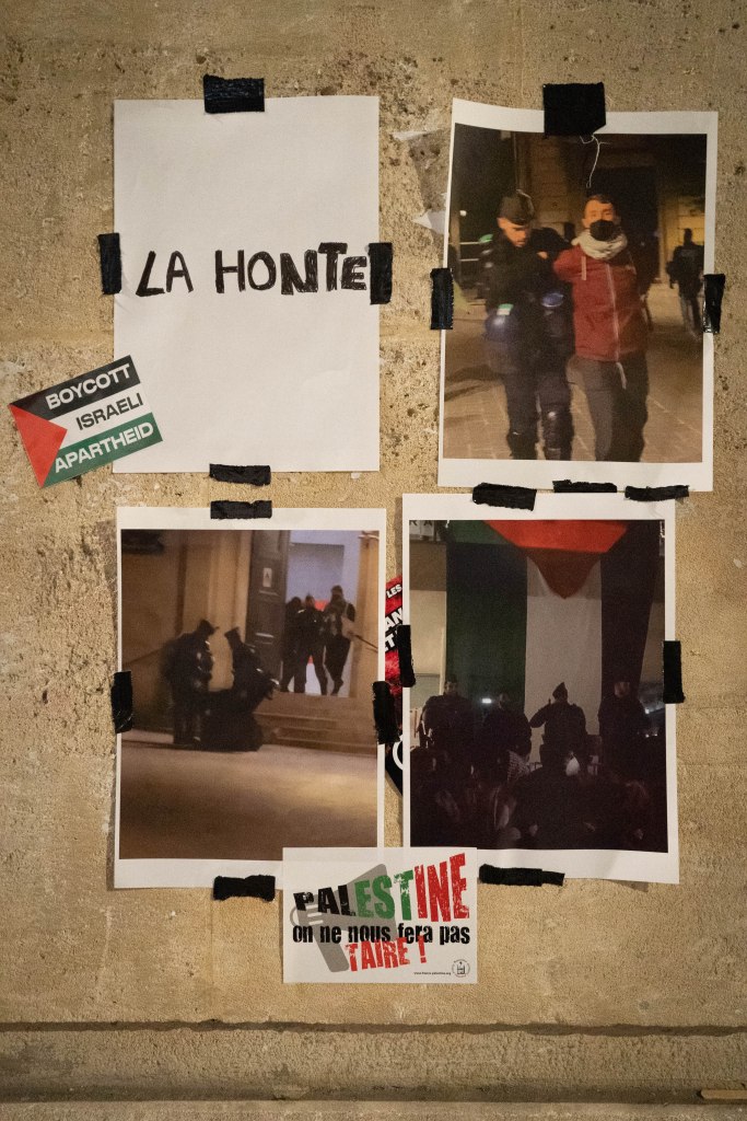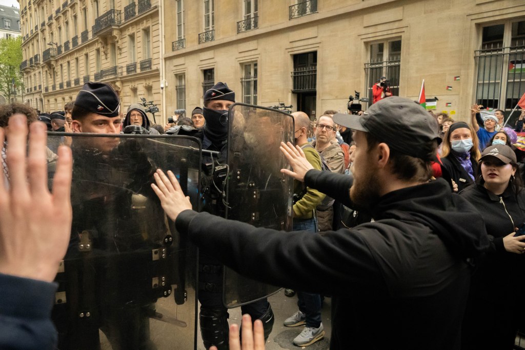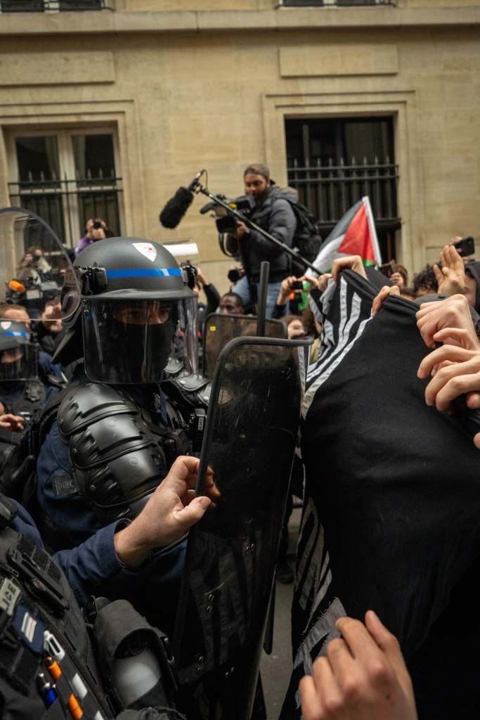 Le jeudi 25 avril 2024, les étudiants de Sciencespo Paris ont voté en faveur de l’occupation de l’établissement lors d’une assemblée générale. Cela fait suite à la répression policière de la veille lorsque les étudiants occupants le campus de St Thomas ont été délogés de force par les CRS dans les alentours de minuit. Les étudiants demandent à leur établissement de condamner clairement le génocide en cours à Gaza, rompre ses partenariats avec les universités israéliennes comme elle l’a fait pour les universités russes et se retirer de certains partenariats avec des entreprises complices du génocide. Les étudiants ont donc commencé l’occupation dès le jeudi soir (toujours en cours), ils ont étés soutenus par des manifestants toute la nuit, ces derniers les ont ravitaillés en nourriture. L’occupation s’est poursuivie le lendemain avec le blocus complet du campus. De nombreux manifestants se sont joints aux étudiants pour leur apporter leur soutien et malgré l’arrivée provocatrice des activistes du groupe sioniste « Nous Vivrons » pour s’opposer à ce rassemblement, ce dernier s’est passé dans le calme et les militants pro-israéliens qui ont fait des irruptions au sein de la foule n’ont pas été agressés. La situation s’est tendue vers 19h avec différentes sommations des forces de l’ordre annonçant une charge imminente suite à l’annonce du préfet de Paris demandant « l’évacuation de la voie publique ». L’intervention des députés LFI Jérôme Legavre et Thomas Portes qui se sont positionnés entre les CRS et les étudiants a empêché les forces de l’ordre de charger les étudiants qui étaient déjà nassés depuis plusieurs heures. Vers 21h, la levée du blocage a été annoncée par les étudiants suite au communiqué de la direction de SciencesPo se pliant à deux des trois demandes des étudiants mobilisés à savoir la tenue d’un « town hall » avec l’administration et la cessation des poursuites disciplinaires envers les étudiants propalestiniens.