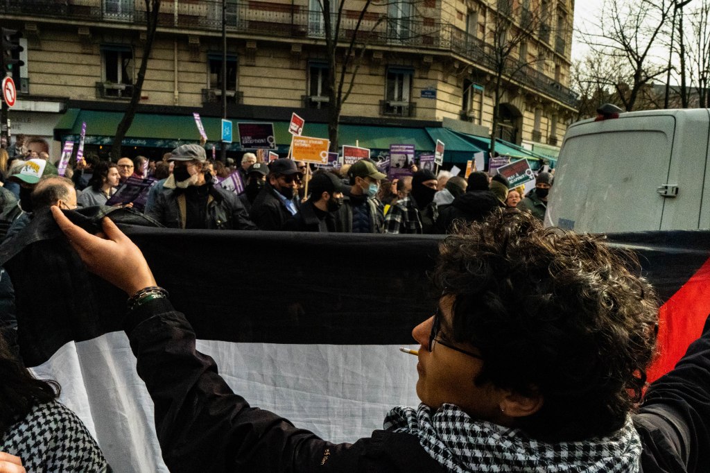 À l’occasion de la journée internationale de lutte pour les droits des femmes, des milliers de personnes se sont rassemblés à Paris pour marcher de Gambetta à Bastille. Ce rassemblement féministe a été entaché par des affrontements entre des manifestants féministes propalestinien et les membres du service d’ordre du cortège du collectif sioniste Nous Vivrons armés de gazeuses et de gants coqués. La pression exercée par les manifestants a fini par faire fuir les militants sionistes de la marche suite à l’intervention de la Brav-M venue s’interposer entre les deux groupes.